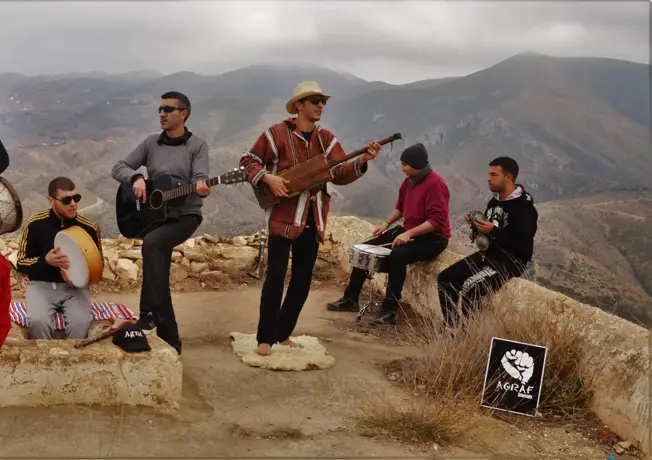 Préparez-vous pour une soirée pleine de guitares rythmiques, de percussions entraînantes et d'histoires captivantes de la région du Rif. Le groupe marocain Agraf, qui signifie "racines" en amazigh, propose un mélange unique de sonorités traditionnelles rifaines, de rock moderne et de folk. Le résultat ? Un son puissant et authentique, profondément enraciné dans la tradition mais qui s'inscrit parfaitement dans le monde d'aujourd'hui.